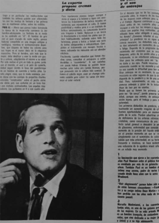 Los galanes mayores de 40 años se veían obligados destacarse a pesar de su falta de juventud: “La fascinación que ejerce a los cuarenta y tres años Paul Newman entre el público femenino es envidiada por más de un galancito veinteañero” (Femirama, 1969:120).