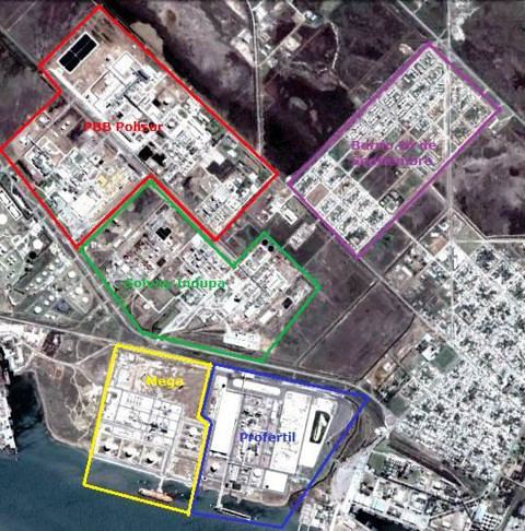 Figura 2. Empresas del Polo Petroquímico Bahía Blanca y barrio 26 de Septiembre de la localidad de Ingeniero White