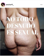Figura 6. Captura de pantalla realizada por Agustina Lollini Noël el día 16 de agosto de 2023. Ana Harff, Instagram, 22 de junio de 2023. (Imagen de la autora con intervención de texto “No todo desnudo es sexual”).